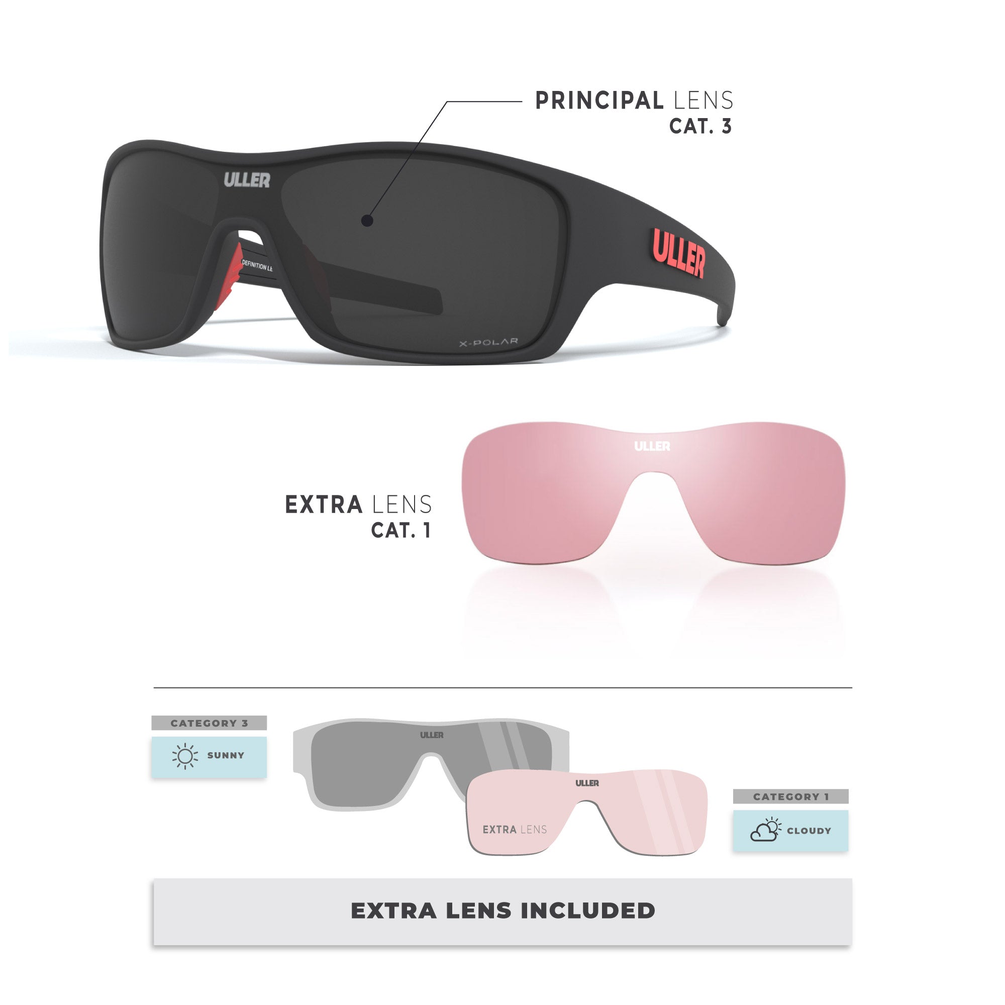 - Sekundärlinse: UV400-Schutz CAT.1 für bewölkte Tage